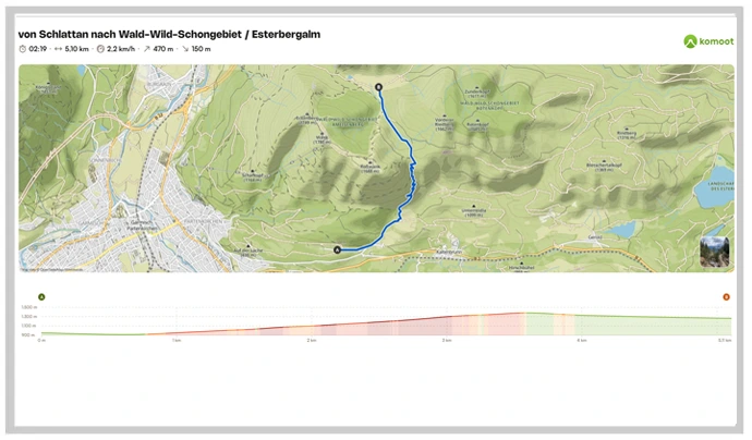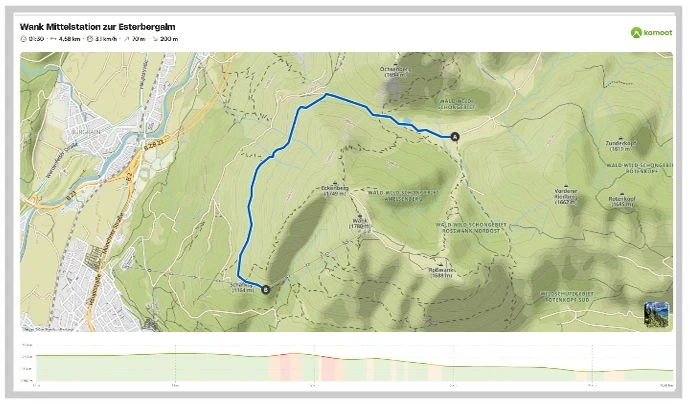 Ausgangspunkt: Wank Talstation mit der Gondel zur Bergstation und dann geht es ca. 450 Höhenmeter und 3,4 km bergab zum Almgasthof Esterberg